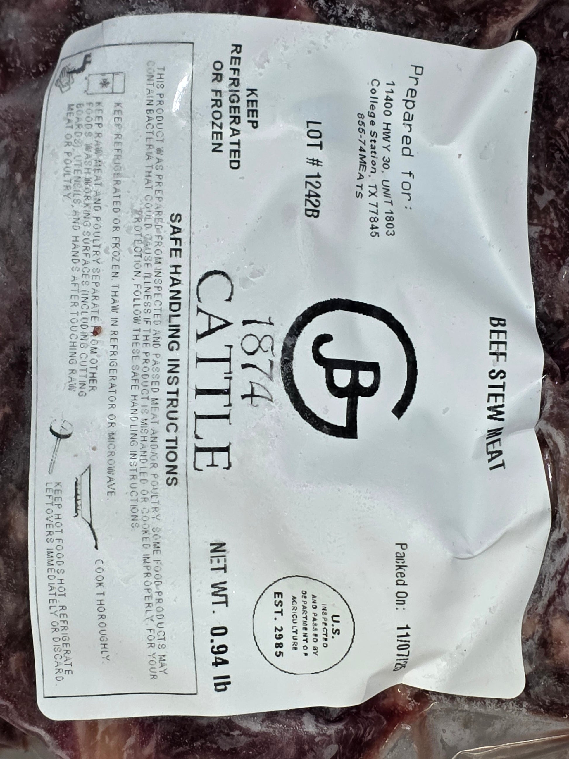 My stew meat comes from local raised beef and processed in my USDA facility.